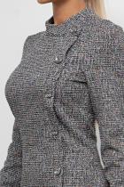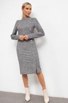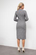 Элегантное платье прилегающего силуэта из трикотажного полотна - Меланж. Длинный втачной рукав. Горловина оформлена воротником - стойкой с запахом, переходящей в имитацию застежки на пуговицы. Модель без молнии. Низ ровный, по переду шлица.