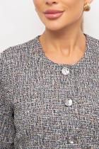 Укороченный жакет прямого силуэта из трикотажного полотна Букле. Длинные втачные рукава. Округлая горловина на внутренней обтачке. По переду выполнена застежка на пуговицы. По переду выполнены накладные карманы. Низ ровный. Модель на подкладке из ткани Ниагара.