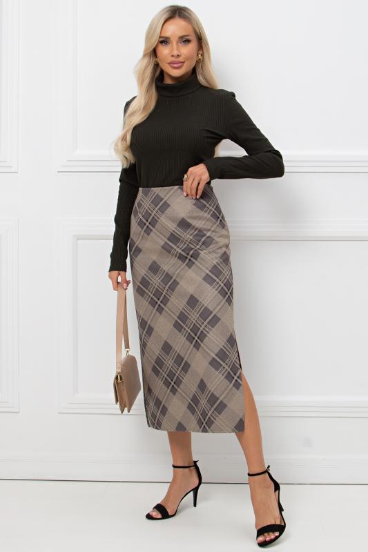 Элегантная юбка из плотного трикотажного полотна с комфортной посадкой на талии. Верх талии на внутренней обтачке. Сбоку застежка на потайную молнию. Юбка на подкладке. Низ ровный, по бокам разрезы.