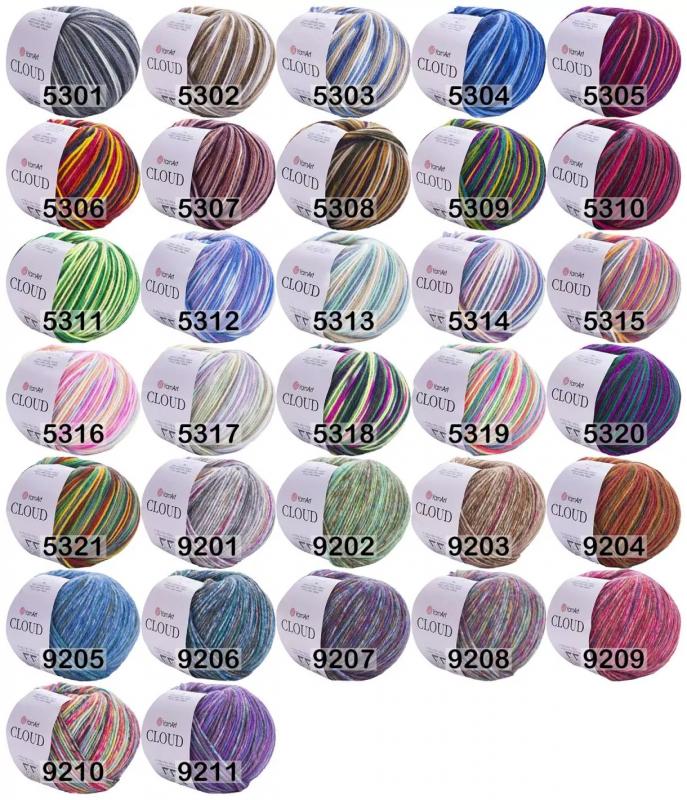 Пряжа ЯрнАрт Клауд. Принтованная полушерсть актуальных цветов. Теплая и мягкая. Производители рекомендуют спицы 4.5-5.