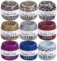 Пряжа ЯрнАрт Снейк Клуб - это металлизированная пряжа, которая подарит вашим изделиям блеск и шик. Сочетание металлического блеска, имитации кожи змеи и мягкости делает ее идеальным выбором для творчества. Она идеально подходит для создания эксклюзивных сумок и ярких изделий для интерьера и аксессуаров. Благодаря металлизированному трикотажу, который используется в качестве основы этой пряжи, ваши изделия будут белестящими, стильными и неповторимыми. Блеск, который придает этот вид пряжи, создает эффект драгоценных металлов, делая ваше изделие незабываемым. Пряжа YarnArt Snake Club подходит для создания самых разнообразных изделий - от блестящих и глянцевых сумочек и кошельков до модных и блестящих подушек и ковров. Рекомендовано использовать спицы №6 и крючок №6.5, чтобы получить изделие нужной плотности и достичь желаемого идеального результата. С этими размерами инструментов легко работать, что позволяет вязать изделия быстро и качественно.