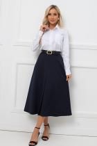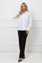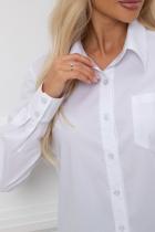 Рубашка прямого кроя. Горловина оформлена отложным воротником на стойке. По переду планка с застежкой на петли и пуговицы. Левая полочка дополнена накладным карманом. Длинный втачной рукав оканчивается притачной манжетой. низ ровный, без разрезов.