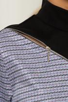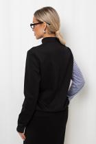 Комфортный джемпер прямого силуэта из трикотажного полотна. Длинный втачной рукав со спущенным плечом. Горловина оформлена воротником - стойка. По спинке застежка на потайную молнию. Перед декорирован молнией в шве. По низу притачная манжета.