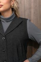 Стильный сарафан приталенного силуэта. Застежка на петли и пуговицы. Модель с отложными лацканами, без воротника. По линии талии кулиска присборена на эластичную резинку с поясом. По переду накладные карманы. Низ ровный, без разрезов.