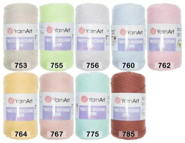 ЯрнАрт макраме твистед 3 мм. Рекомендуемый размер спиц №7 и крючка №8.