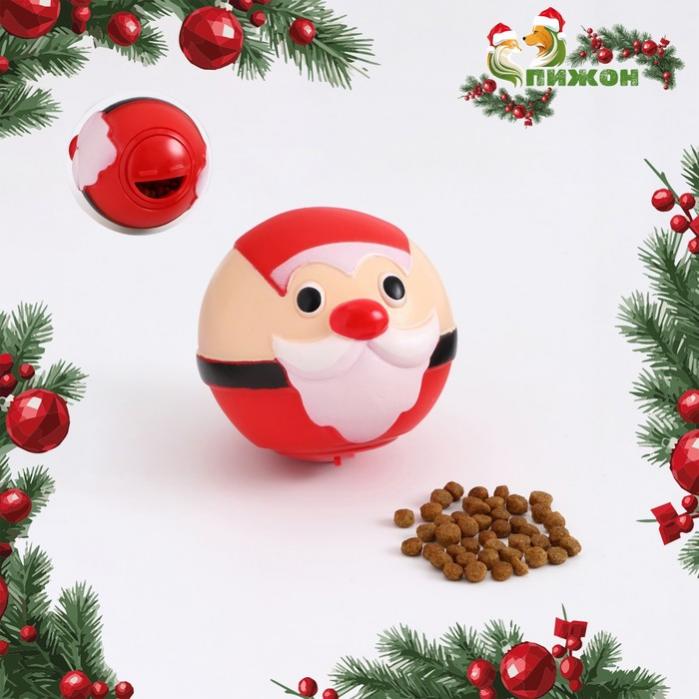Игрушка-шар для собак под лакомства «Дед Мороз», 8 см