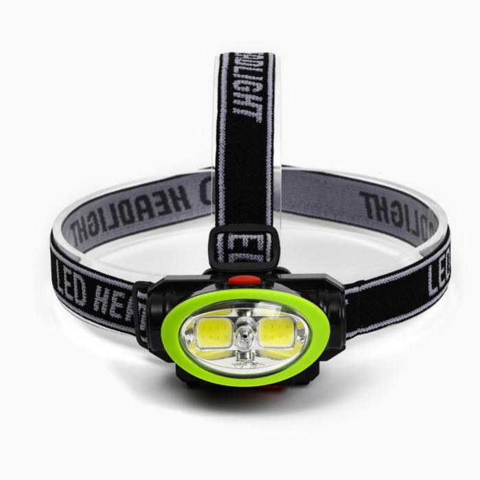 Фонарь налобный аккумуляторный, 5 Вт, 1200 мАч, 120 Лм, 2 режима, лазер, 5×6.5 см, зелёный