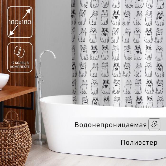 Штора для ванны Доляна Cats, 180×180 см, полиэстер, белая