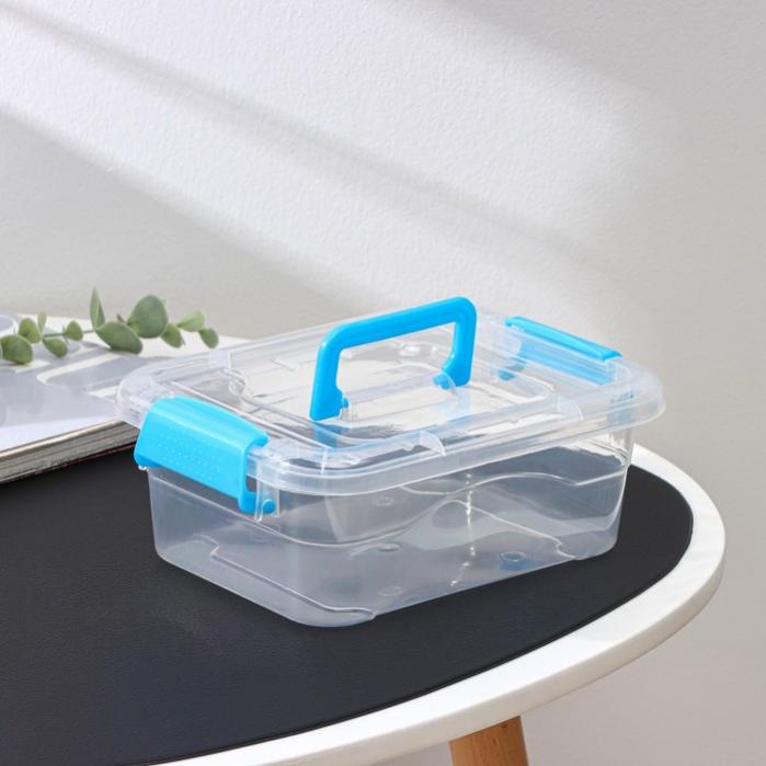 Контейнер для хранения, крышка с ручкой на защёлке, 1.4 л, 20×15×7.5 см, прозрачный корпус, голубая ручка