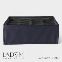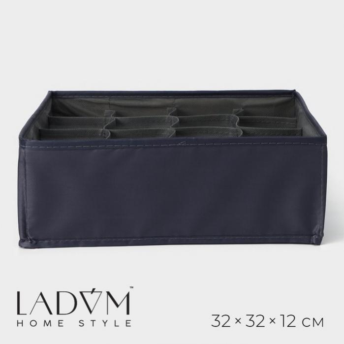 Органайзер для хранения белья LaDо́m, 16 ячеек, 32×32×12 см, графитовый