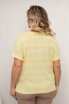 Красивая футболка прямого силуэта из трикотажного полотна. Короткие цельнокроеные рукава, оканчиваются манжетами на отворотах. Округлый вырез горловины. Низ ровный, по бокам разрезы.