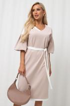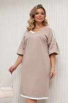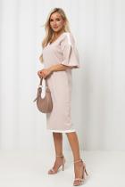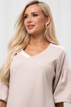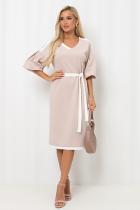 Женственное платье прямого силуэта. V - образная горловина на внутренней обтачке оформлена вставкой. Втачной рукав - фонарик со спущенным плечом. Низ ровный, оформлен притачной манжетой, сзади шлица. Пояс из основного материала входит в комплект.