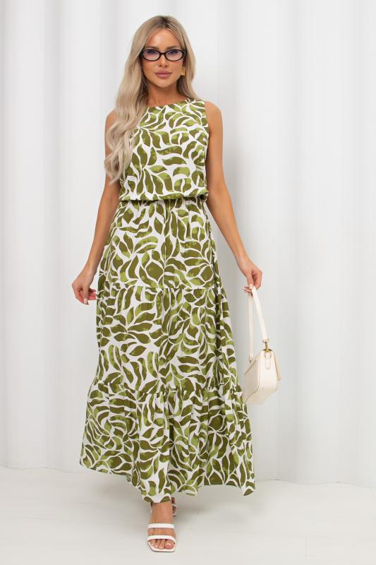 Комфортное летнее платье приталенного силуэта выполнено из легкой ткани штапель. Округлая горловина и проймы на внутренней обтачке. Модель отрезная по линии талии, присборена на эластичную резинку. Юбка состоит из трех ярусов на сборке. Юбка состоит из трех ярусов на сборке. Низ ровный, без разрезов.