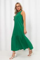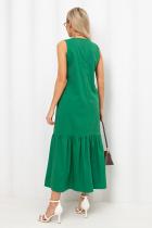 Летнее платье А - силуэта. Округлая горловина на внутренней обтачке. По спинке застежка на потайную молнию. В боковых швах функциональные карманы. Низ оформлен притачным воланом.