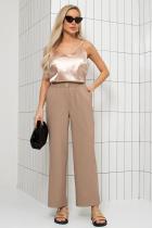 Стильный топ прямого силуэта из легкой ткани на бретельках, с глубоким V-образным вырезом. Модель без застежек. Низ прямой, без разрезов.