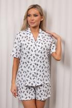 Комфортный домашний костюм состоит из рубашки и шорт. Рубашка прямого кроя с английским отложным воротником, по переду застежка на петли и пуговицы. Короткий втачной рукав. Низ ровный, без разрезов. Шорты с комфортной посадкой на талии, которую обеспечивает притачной пояс на резинке.