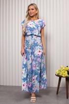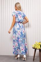 Воздушное платье полуприлегающего силуэта с цветочным принтом. Короткие спущенные рукава. Горловина на внутренней обтачке оформлена "