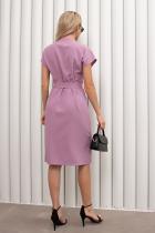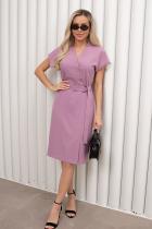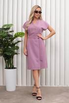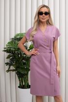 Элегантное платье прямого кроя отлично впишется в ежедневный гардероб. Короткий цельнокроеный рукав, V - образная горловина переходящая в фиксированный запах на груди. По переду юбки выполнена шлица. Пояс из основного материала в комплекте.