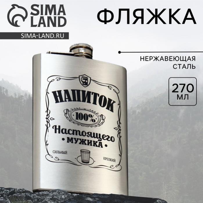 Фляжка «Напиток настоящего мужика», 270 мл, серебристая