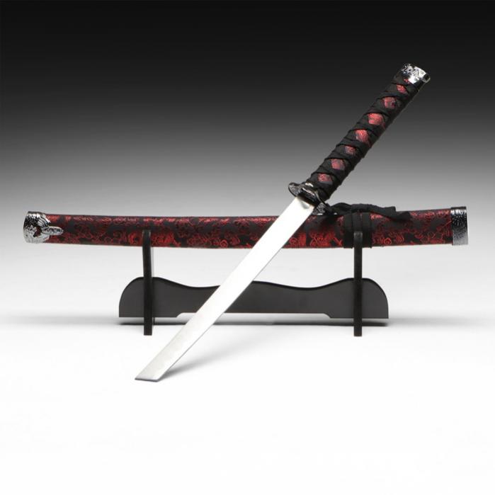 Макет оружия «Сувенирная катана на подставке», чёрные ножны с красным узором, 70 см