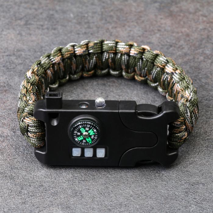 Браслет для выживания 4 в 1 (паракорд - 3 м, компас, свисток, фонарь), цвет камуфляж