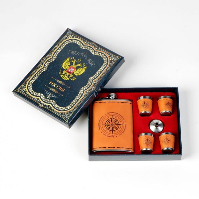 Подарочный набор «Компас»: фляжка 270 мл, 4 стопки, воронка