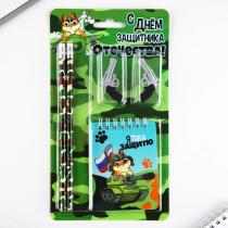 Подарочный набор «С днём защитника отечества. 23 февраля», карандаши 2 шт., ластики 2 шт., блокнот