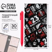 Подарочный набор, блок бумаг для записей, стикеры, ручка «23 Февраля»