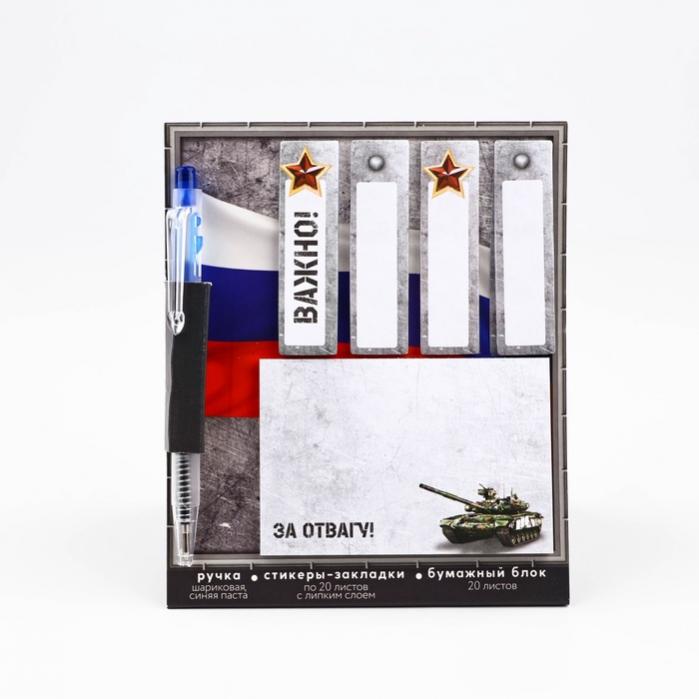 Подарочный набор, стикеры 20 листов и мини ручка шариковая «За отвагу. 23 февраля»
