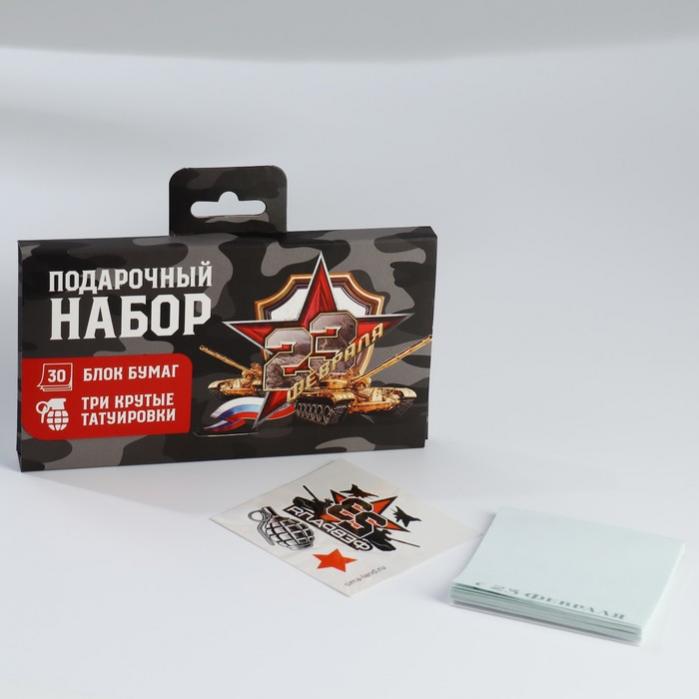 Подарочный набор «23 февраля», переводные татуировки детские и блок листов