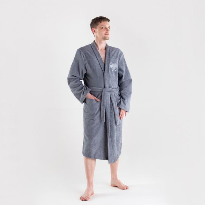 Халат махровый мужской «Этель. Самый лучший», размер 56-58, серый