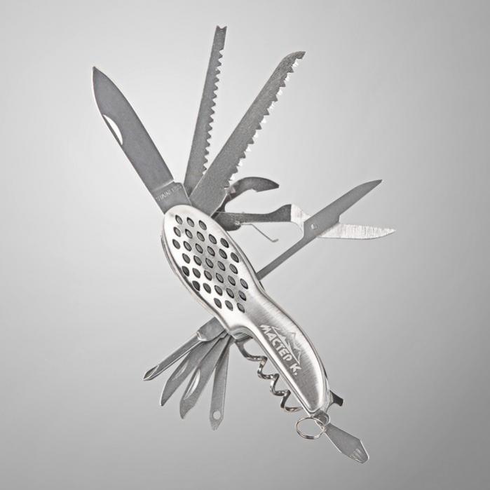 Нож швейцарский «Походный» 12 в 1, рукоять перфорированная