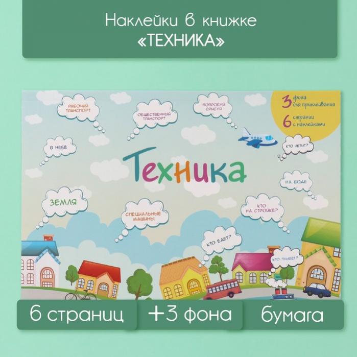 Наклейки в книжке «Техника», 3 фона, 20.7×14.2 см