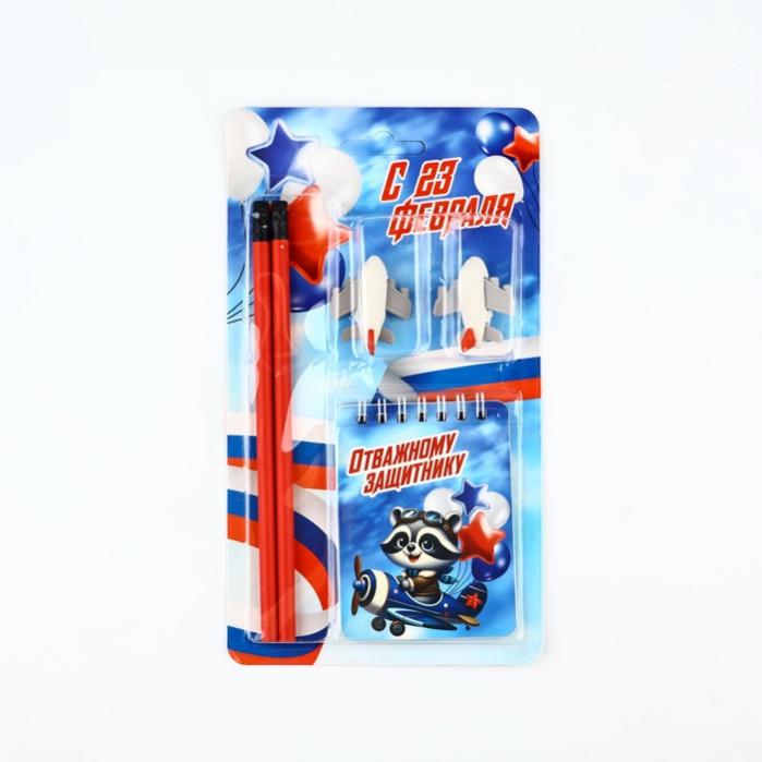 Подарочный набор «С 23 февраля», карандаши 2 шт., ластики 2 шт., блокнот