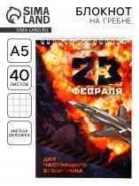 Блокнот А5, 40 л. на гребне в клетку «23 февраля»