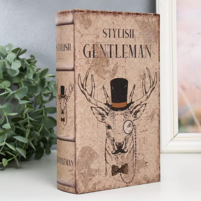 Шкатулка книга-сейф «Олень в цилиндре и с пенсне», дерево и искусственная кожа, с замком, 21×13×5 см