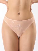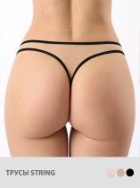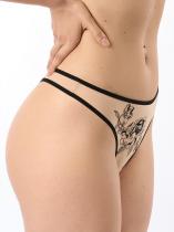 Трусы «стринги» из сетки с V - образным вырезом спереди и завышенной линией бедра. С изящной цветочной вышивкой и контрастной отделкой по краям. Соблазнительно подчеркивают бедра, практически полностью открывают ягодицы. Превосходно сочетаются с тонкой и облегающей одеждой.