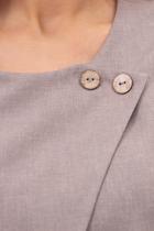 Стильный летний жилет прямого кроя. Округлая горловина. Асимметричные полочки с застежкой на две верхние пуговицы. Модель на подкладке.