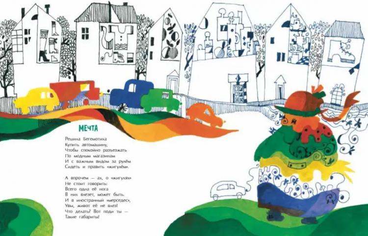 Эта книга не может не понравиться детям. Весёлые стихи, яркие забавные рисунки, а главное, запоминающаяся и очень симпатичная героиня - большая-пребольшая Бегемотиха, весьма энергичная современная дама, с которой то и дело что-то приключается. Она шьёт себе обновки, бегает в магазин за покупками, лезет в тесный трамвай, осваивает автомобиль, сооружает в квартире новую ванну… И всё это оборачивается настоящим фейерверком событий, очень похожих на увлекательную детскую игру. Для старшего дошкольного и младшего школьного возраста.