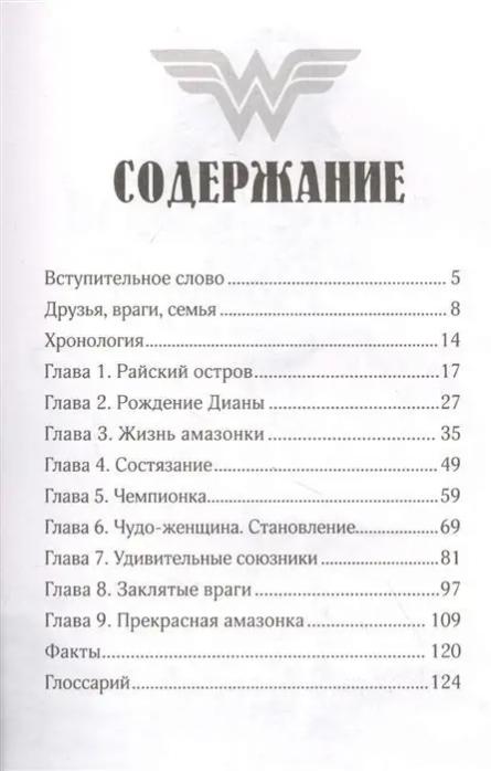 Перед тем как стать Чудо-женщиной, Диана жила на далёком острове, где опытные воительницы обучали её сражаться за правое дело. Но каким образом Диана попала в наш мир? Как стала Чудо-женщиной? Кто её величайшие союзники и заклятые враги? На страницах иллюстрированной биографии вы найдёте ответы на все интересующие вопросы о Чудо-женщине, принцессе амазонок.
