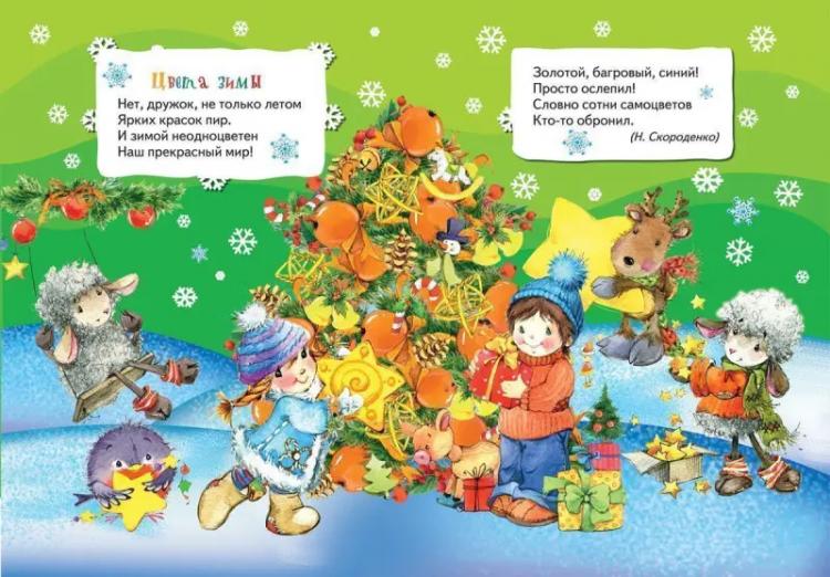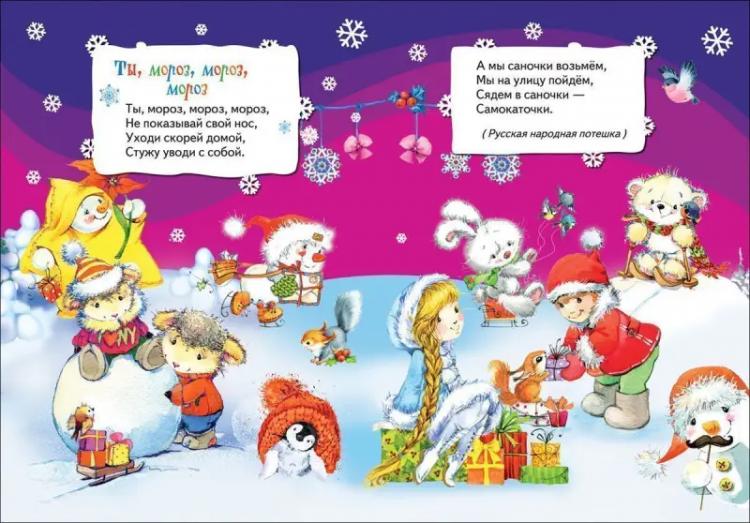 В этой красивой книжке с глянцевыми страничками собраны русские народные потешки, зимние и новогодние стихотворения, загадки и песенки Р. Кудашевой, Н. Скороденко и других замечательных авторов: "