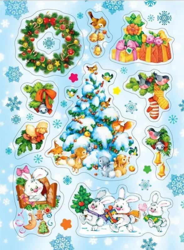 Альбом новогодних наклеек - прекрасный подарок для вашего малыша. В книжке собрано множество ярких картинок, которыми можно украсить детские рисунки, поделки, подарки и даже комнату.