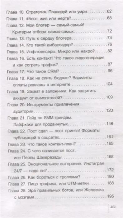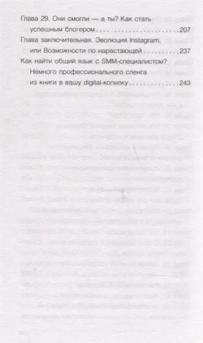 рассказывает о SMM по-русски. Про курьёзы акул крупного бизнеса в INSTAGRAM, подножки селебрити и провалы личных брендов. Про SMM-стратегию: какие сложности и риски она помогает избежать и почему без неё жизнь и эволюция в INSTAGRAM НЕВОЗМОЖНА. Неважно блогер вы или только собираетесь завести свой блог. - Из книги узнаете, как не затеряться среди миллионов аккаунтов и как, занимаясь любимым делом, получать не только удовольствие от творческой реализации, но и зарабатывать. У вас есть продукт, который вы хотите продать сотням тысяч людей? - Узнайте, какие способы реально помогают достичь результата, а какие тратят ваше время и деньги. А может, вы в поиске надёжного SMM-специалиста? - Отдельная глава книги станет точным навигатором в поиске качественных услуг продвижения, в которой чек-лист SMM-компетенций вас неожиданно обрадует. Честно! Просто! Понятно! Полезно!