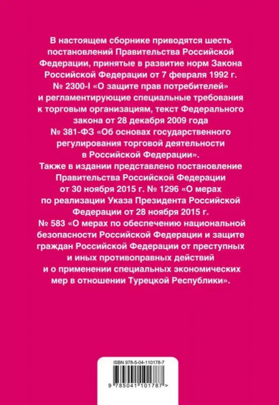 и регламентирующие специальные требования к торговым организациям. Также в издании представлено постановление Правительства РФ от 7 августа 2014 № 778 (в редакции от 13 августа 2015) "