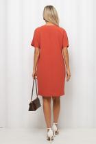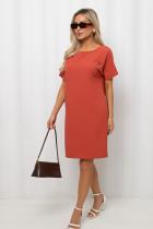 Комфортное платье прямого силуэта из однотонного полотна. Округлая горловина на внутренней обтачке. Короткий цельнокроенный рукав. Низ ровный, без разрезов.