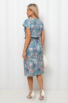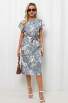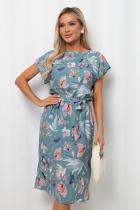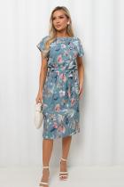 Комфортное платье полуприлегающего силуэта из легкой ткани «Ниагара». Короткие спущенные рукава. Горловина-лодочкой. Модель отрезная по линии талии, собрана на резинку. Низ ровный, без разрезов. Пояс из основной ткани в комплекте.