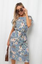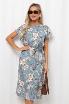 Комфортное платье полуприлегающего силуэта из легкой ткани «Ниагара». Короткие спущенные рукава. Горловина-лодочкой. Модель отрезная по линии талии, собрана на резинку. Низ ровный, без разрезов. Пояс из основной ткани в комплекте.