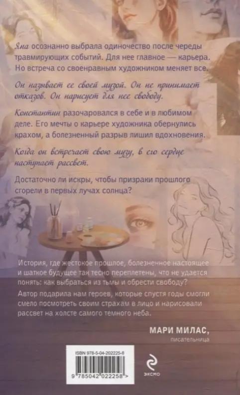 Яна осознанно выбрала одиночество после череды травмирующих событий. Для нее главное — карьера. Но встреча со своенравным художником меняет все. Он называет ее своей музой. Он не принимает отказов. Он нарисует для нее свободу. Константин разочаровался в себе и в любимом деле. Его мечты о карьере художника обернулись крахом, а болезненный разрыв лишил вдохновения. Когда он встречает свою музу, в его сердце наступает рассвет. Достаточно ли искры, чтобы призраки прошлого сгорели в первых лучах солнца?