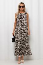 Летнее платье А - силуэта. Округлая горловина на внутренней обтачке. По спинке застежка на потайную молнию. В боковых швах функциональные карманы. Низ оформлен притачным воланом.