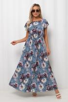Воздушное платье полуприлегающего силуэта с цветочным принтом. Короткие спущенные рукава. Горловина на внутренней обтачке оформлена "